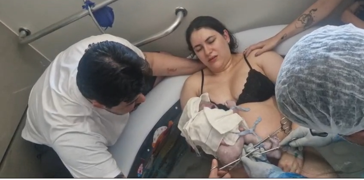 Parto Natural em posição de Gaskin na banheira na suíte PPP