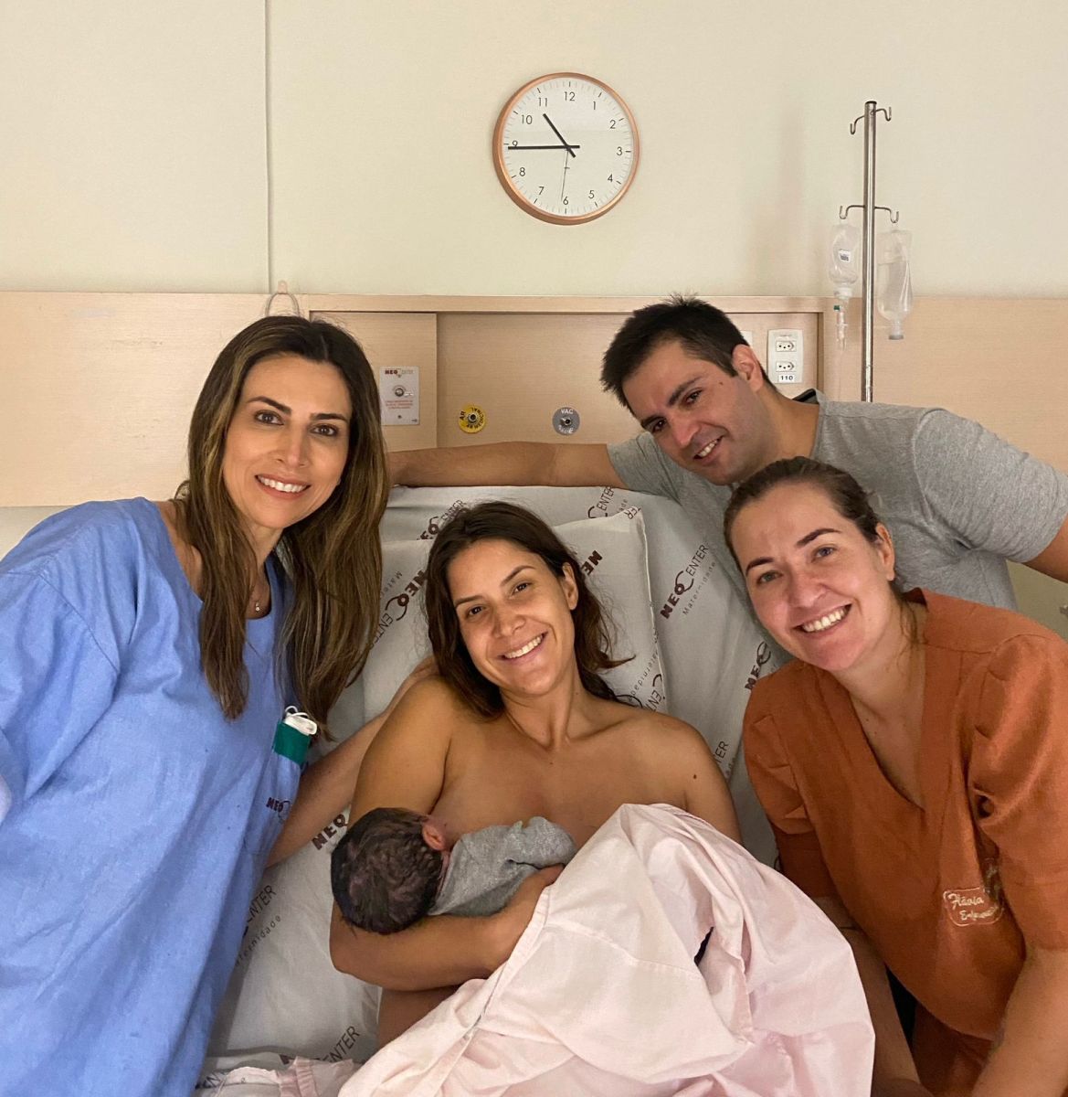 Confesso que nem vi o que estava acontecendo direito, pois estava totalmente anestesiada de amor com o meu pequeno nos braços. Por fim, posso dizer que sinto muito orgulho e satisfação por ter conseguido ter um parto natural de uma forma tão leve e despretensiosa e acredito que isso só foi possível graças a minha equipe (Dra. Avelina e Flávia) e, sem dúvidas, o apoio do meu marido Álvaro que me deu total apoio e incentivo durante toda a gestação. Não acreditava que eu seria capaz de parir e, ter conseguido, me enche de satisfação. Acho que ao dar a luz atravessamos um portal que nos eleva para outro nível de existência na qual deixamos de ser protagonistas de nossas vidas e o cuidar passa a ter mais importância do que ser cuidada.