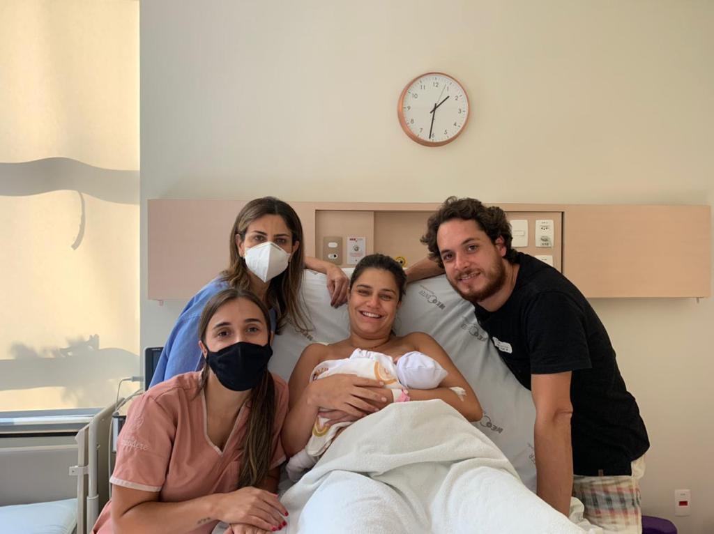 Estava na bola de 4 apoios tive a força do meu parceirão Diego, apoio da Leticia, e me senti segura com a Dra Avelina, a Olivia estava saindo… E a dor insuportável se tornou a maior alegria dentro do mesmo minuto.