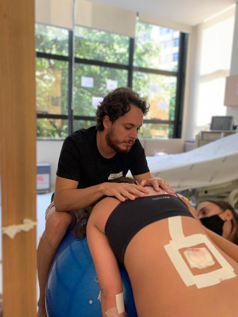 O Diego me acompanhou em algumas sessões de fisioterapia, sem ele nada seria possível. Meu braço direito, amigo e grande parceiro. Ele foi essencial, super ativo e presente durante todo o trabalho de parto.