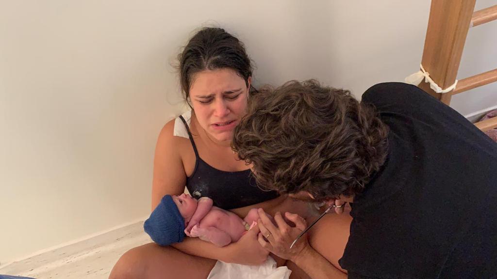 Sentamos no chão da sala de parto e aproveitamos aquele momento especial.