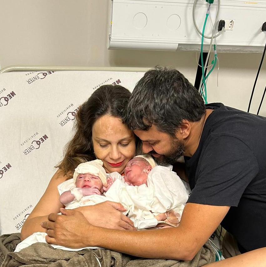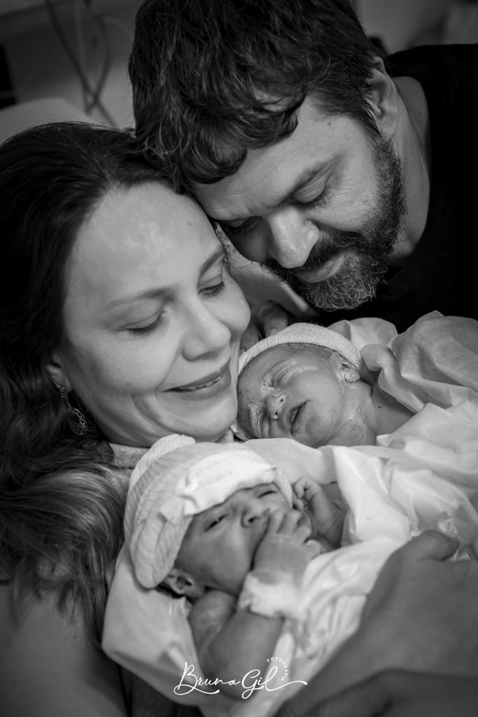 Parto normal em posição semissentada (1º gemelar) e no banquinho (2º gemelar) na suíte PPP